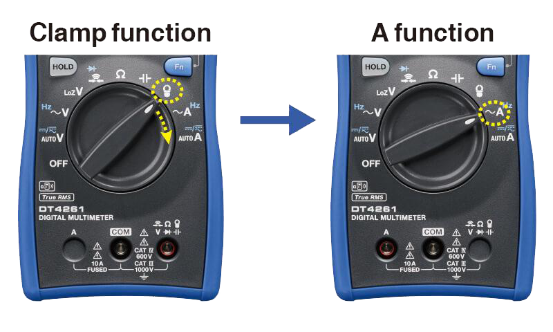 除了延續(xù)防止測試線誤插的端子擋板設(shè)計外,還增加了當(dāng)旋鈕從鉗形表圖標(biāo)位置到電流功能位置時,會自動進(jìn)行保險絲熔斷檢查的功能。這樣,可以在電流測量前知道保險絲的熔斷情況,從而防止誤操作。