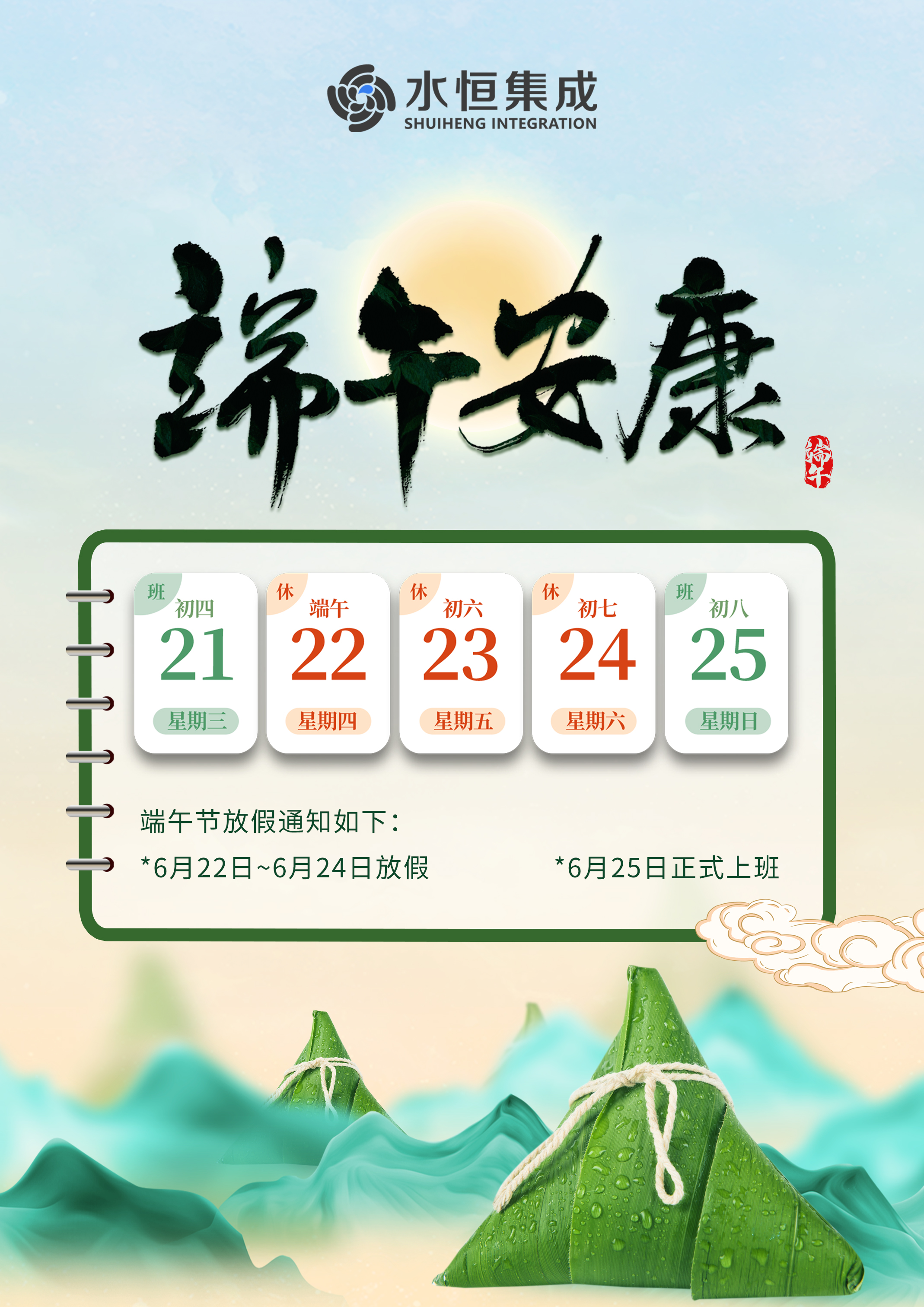 上海水恒集成科技有限公司端午節放假通知